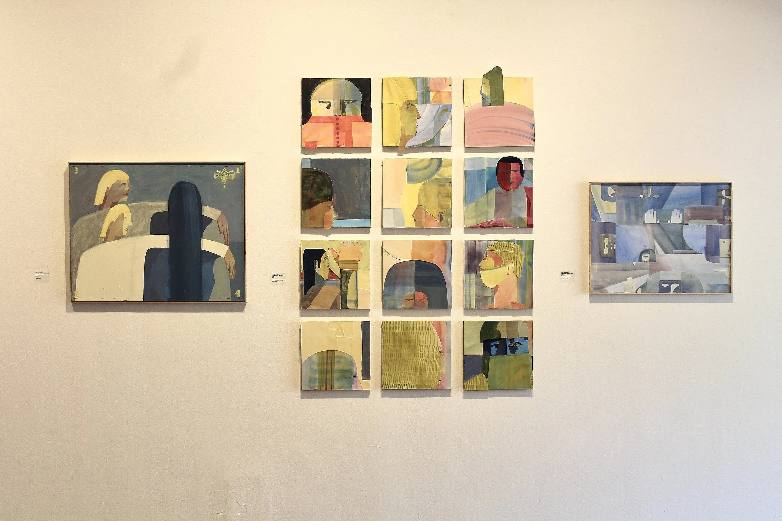 Watercolor, Paper Collage, and Oil Paint on Panels